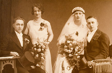 The first wedding took place in Mischief Bay on April 23, 1876, after the original Mischief Makers, Hiram Ogles (left) and Samuel Lindsey (right), had earned enough money from their land auction to marry the women they loved.